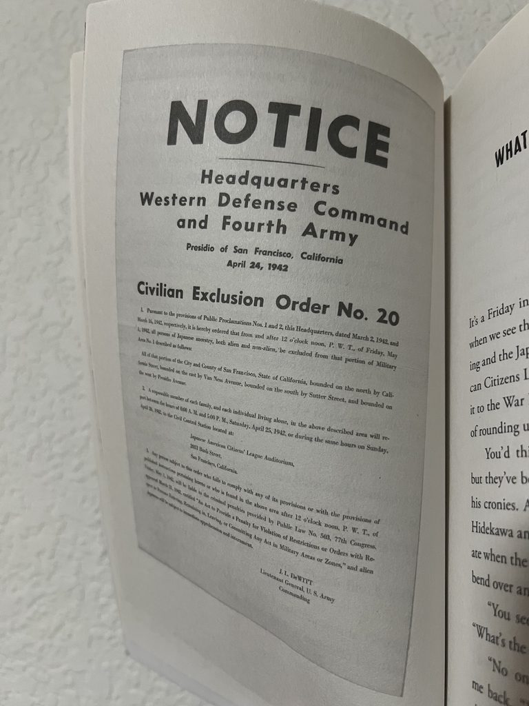 “In the world of Tule Lake, they want you to obey, they want you to be a troublemaker, they want you to admit to things you haven’t done and allegiances you never held, they want you to accept these injustices with a smile. In the world of Tule Lake, you are shot at the gates for trying to get to work on time, for moving too fast, for scaring the Caucasians.